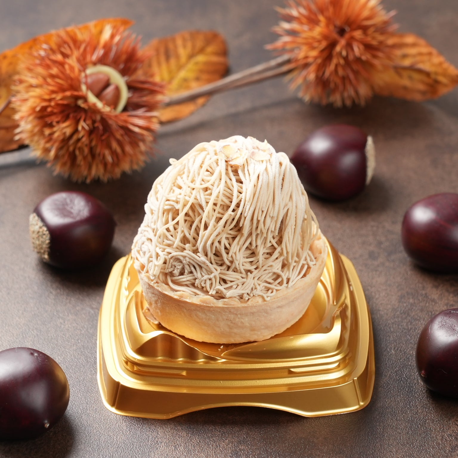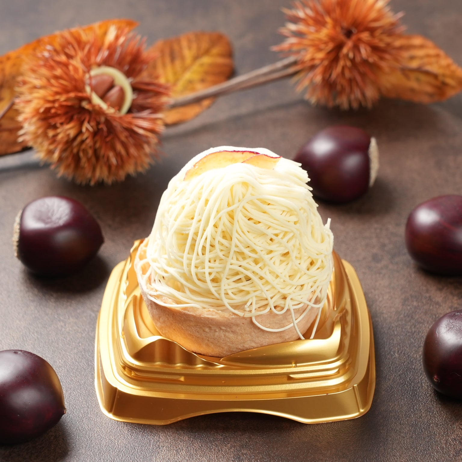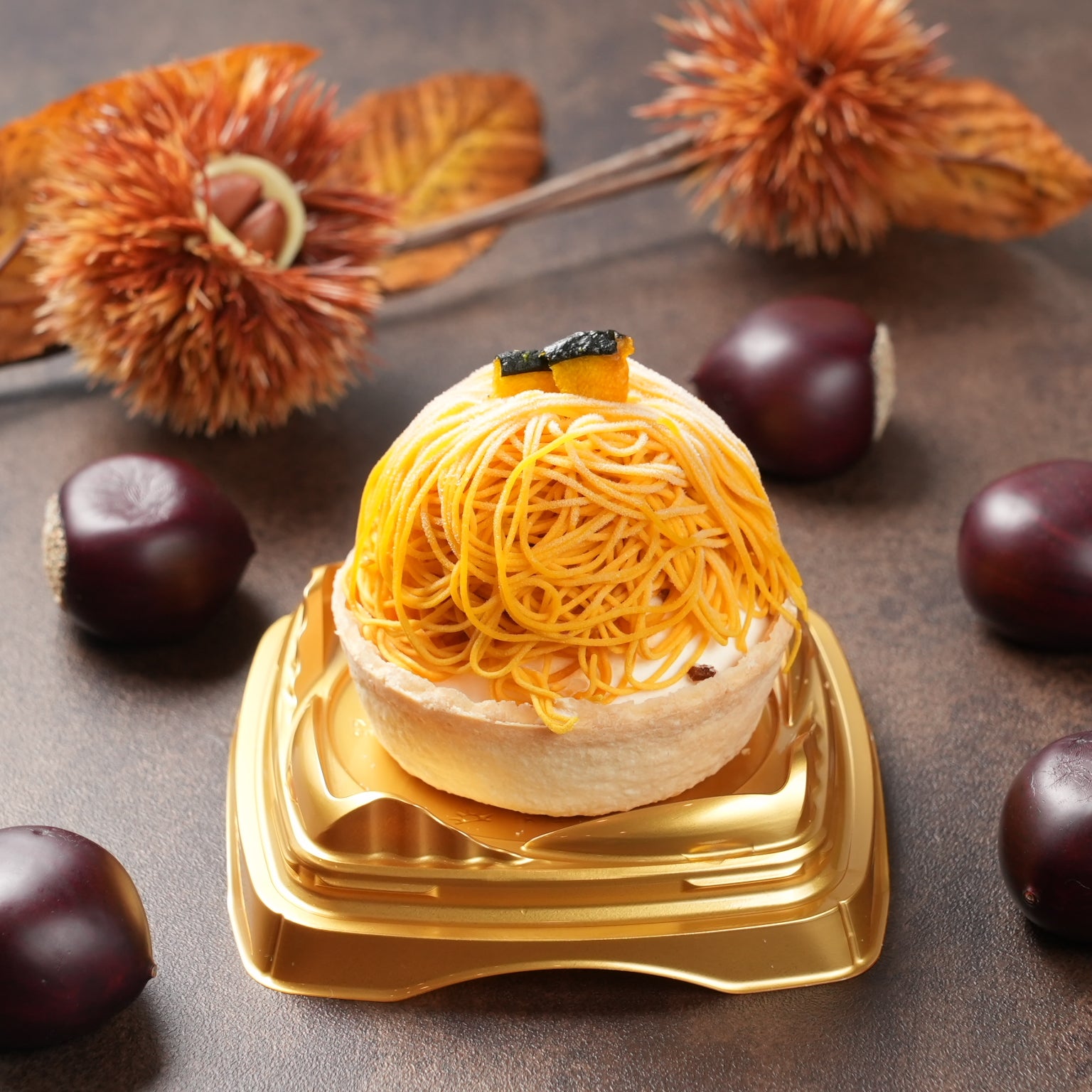 - 原材料名:栗ペースト(国内製造)、焼芋ペースト(国内製造)、かぼちゃペースト(国内製造)、ブラウニー(砂糖、マーガリン、全卵、小麦粉、カカオマス、卵白加工品、水あめ、粉あめ、植物油脂、くるみ、ココアパウダー、油脂加工品)タルト(小麦粉、砂糖、鶏卵)ムースの素(砂糖、粉末油脂、クリーミングパウダー、ゼラチン)、さつまいもチップス、かぼちゃチップス、ブルーベリージャム、クッキークランチ(小麦粉、砂糖、ショートニング、異性化液糖、ココアパウダー、加糖脱脂練乳、食塩)栗の甘露煮、カスタードクリーム、牛乳/酸味料、ゲル化剤(ペクチン)、クエン酸ナトリウム、香料、膨張剤、着色料(カロチン、クチナシ、野菜色素)、増粘剤(加工デンプン、増粘多糖類)、乳化剤、グリシン、リン酸塩(Na),(一部に小麦、卵、乳成分、くるみ、大豆、ゼラチンを含む)