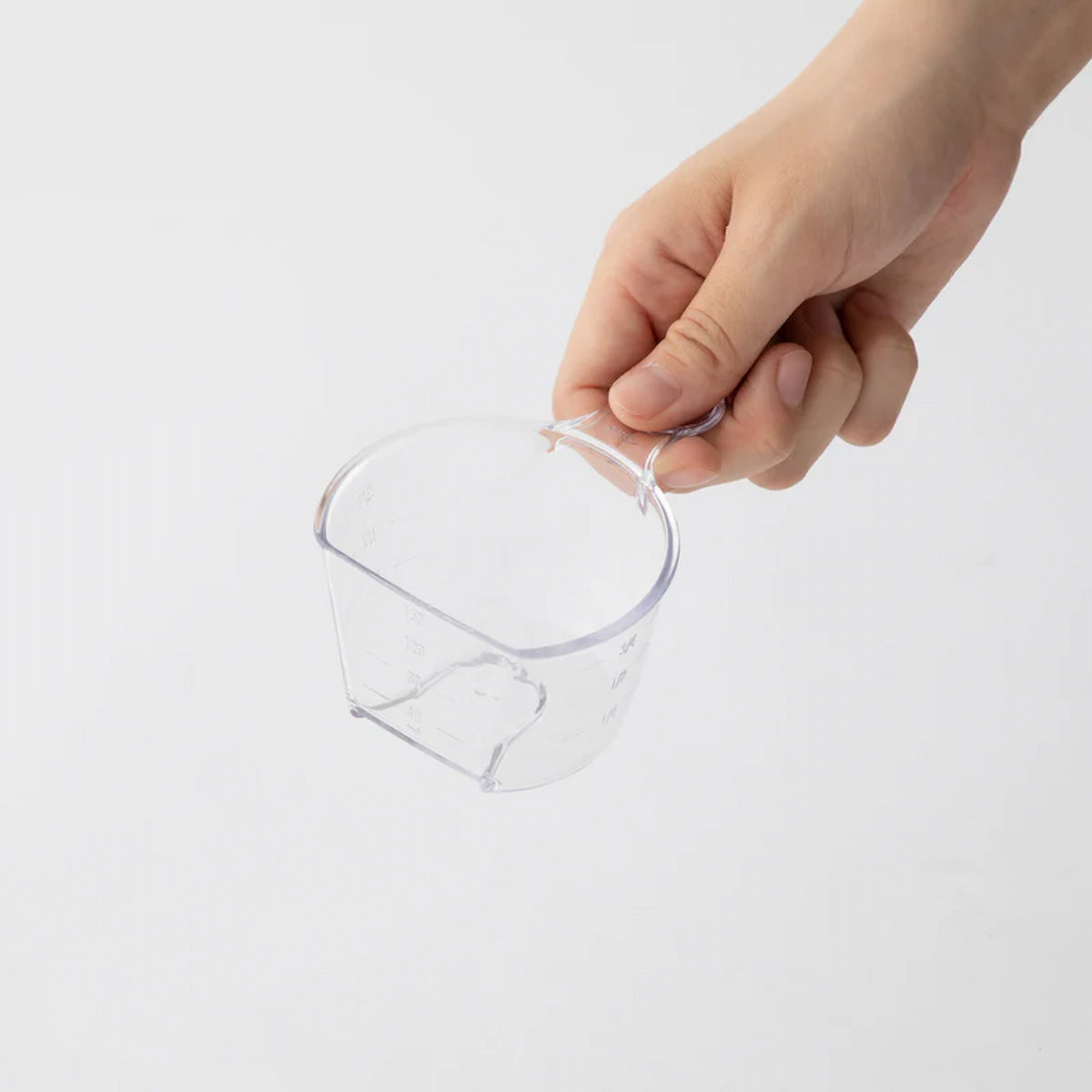 カップはコンテナのフタ裏に装着して収納可能。別で計量カップを用意する必要がなく、使うたびに“カップが見つからない”を解消します。見た目もスッキリ。