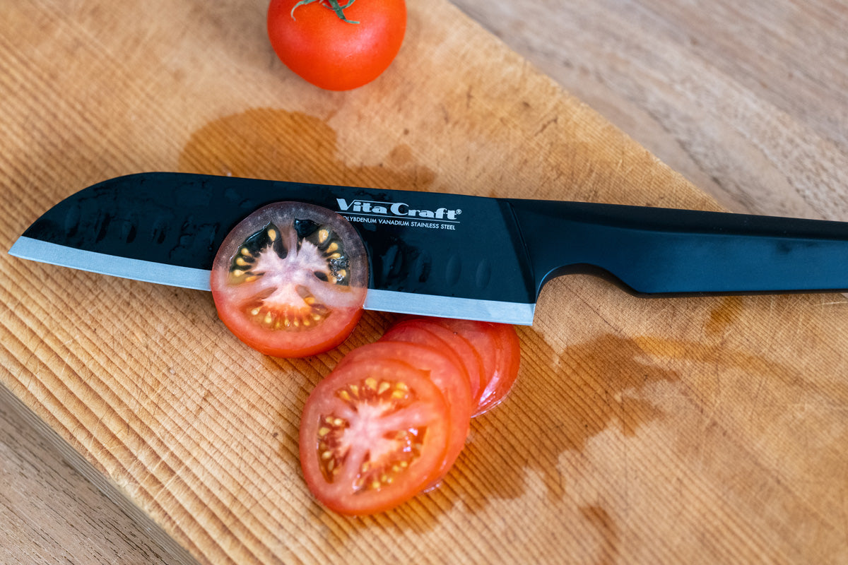 プロのシェフも認める高性能と、使う人のことを考えた設計。 毎日のキッチンをアップグレードしてくれるビタクラフトの「ソリッドナイフブラック 三徳ナイフ」で、切るたびに感じる快適さを体験してみませんか?